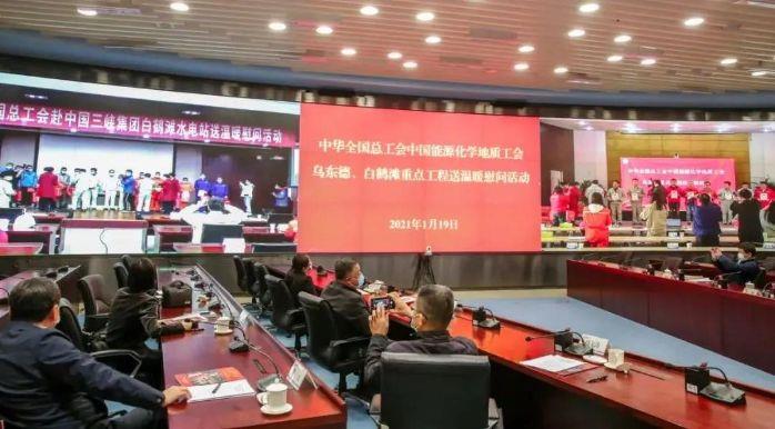 三峽集團工會、中國電建集團工會、中國能建集團工會、烏東德、白鶴灘工程各參建單位相關負責人及勞動模范、優秀建設者、困難職工代表共計100余人參加送溫暖活動。