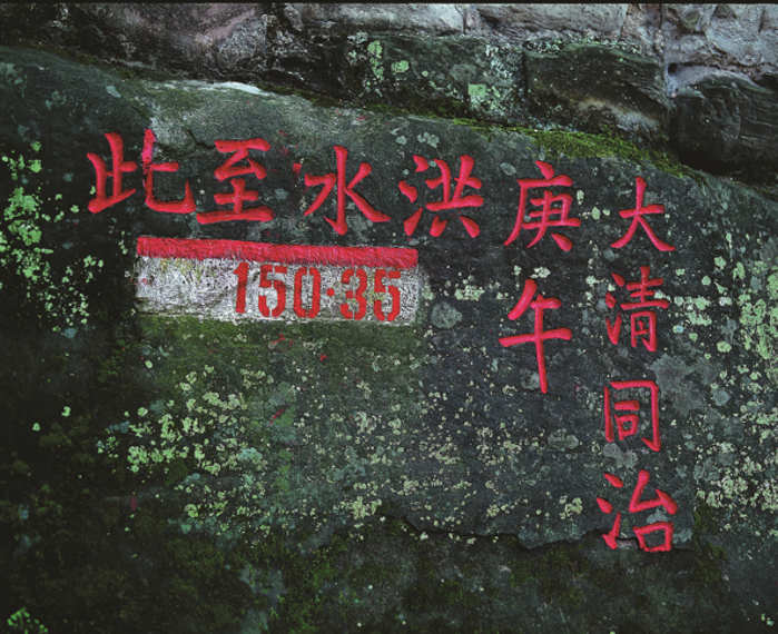 此題刻為云陽縣令所刻,后經長江委歷史洪水調查時測定并補刻洪水高程“150.35”)