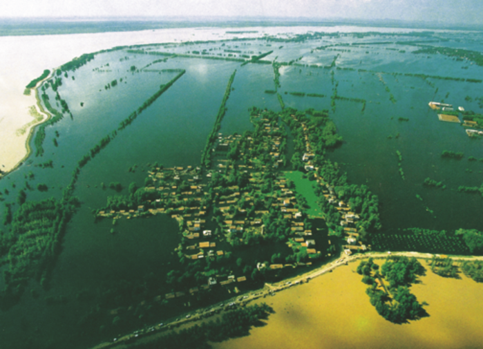 1998年長江發生洪災時被水淹沒的嘉魚縣鄉村簰洲灣
