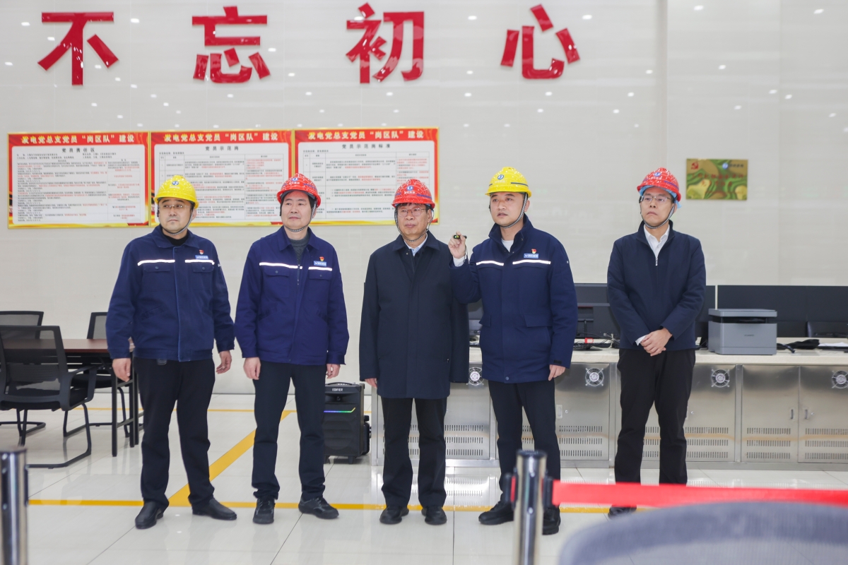 劉偉平在湖北能源鄂州電廠察看機組運行情況?攝影:王鑫