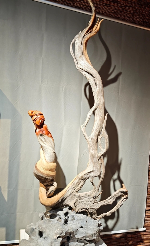 同樣“駐扎”牛扎坪花木城的,還有從事木雕工藝的董國周,“這個作品我個人很喜歡,有客人出價4500元,我沒舍得賣。做木雕是慢工出細活,產量雖低,但不愁賣?!彼钢粋€木雕說道。