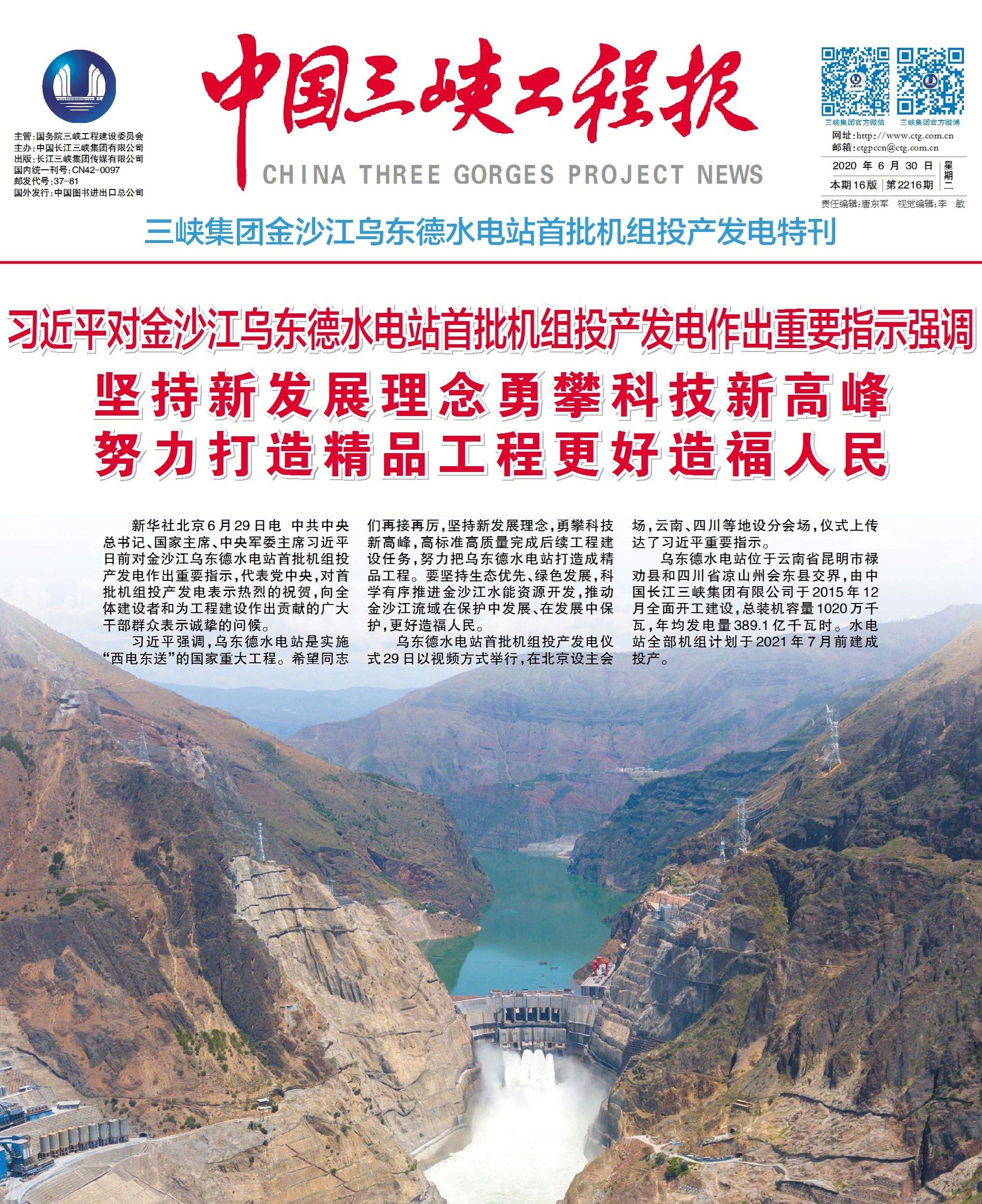 • 《中國(guó)三峽工程報(bào)》烏東德水電站首批機(jī)組投產(chǎn)發(fā)電特刊