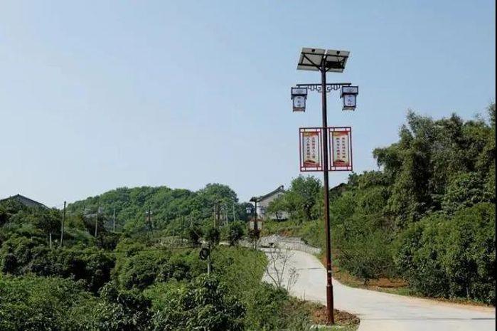 在紫陽村主干道上,一根根白色太陽能路燈整齊排列在道路兩旁。2017年和2019年,長江電力分兩批捐贈安裝了88盞和140盞路燈,亮化道路7.8公里,為1000余戶3000余人安全出行提供了便利。