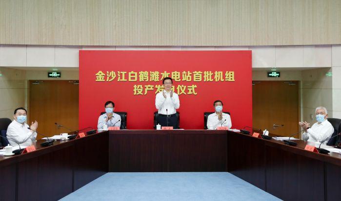 中共中央政治局常委、國(guó)務(wù)院副總理韓正在北京主會(huì)場(chǎng)出席儀式,并宣布白鶴灘水電站首批機(jī)組正式投產(chǎn)發(fā)電。全國(guó)政協(xié)副主席、國(guó)家發(fā)展改革委主任何立峰宣讀了習(xí)近平的賀信和李克強(qiáng)的批示。