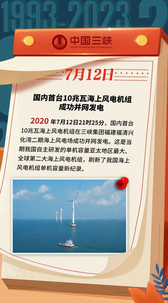 三峽 · 歷史上的今天 | 國內首臺10兆瓦海上風電機組成功并網發電(7月10日-7月16日)