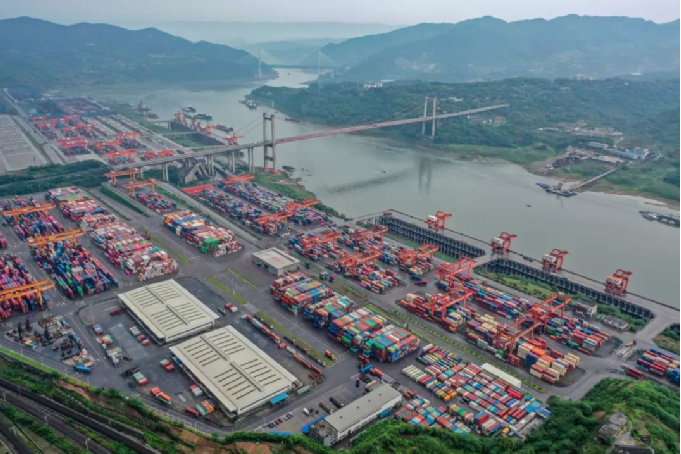 ▲?位于長江重慶段的果園港,是我國內(nèi)河最大的水鐵公多式聯(lián)運樞紐港。從小碼頭到長江上游最大港口,果園港向著更快捷、更智慧、更綠色快速“奔跑”,逐漸蛻變成為成渝地區(qū)雙城經(jīng)濟圈開放門戶和長江上游聯(lián)通世界的“中轉(zhuǎn)站”。攝影:新華社記者 唐奕
