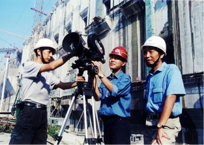 ▲?李忠和同事們在三峽工程建設現場拍攝 湖北電影制片廠供圖