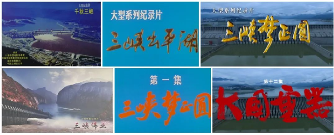▲?1993年以來,中國三峽總公司會同湖北電影制片廠聯合攝制三峽工程題材的電影紀錄片十五部(年度片12部、單本長片3部),其中三部獲得中國電影華表獎優秀紀錄片獎、電影金雞獎最佳紀錄片提名獎等獎項。圖為三峽工程相關紀錄片部分截圖。