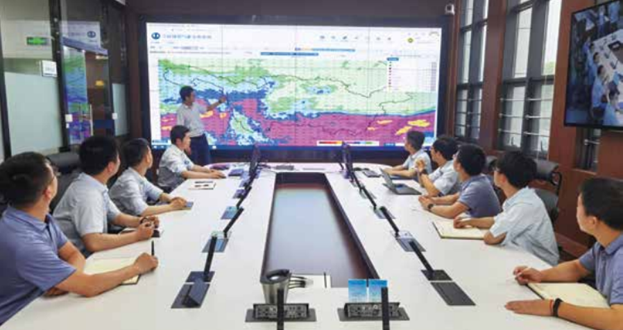 ▲?三峽梯調中心開展水文氣象會商。攝影:莫祖鳳