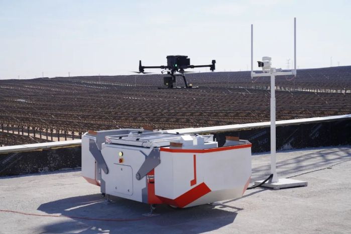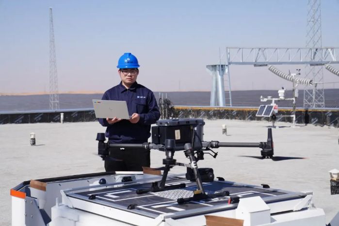 本網訊(徐強 馬冠樸)值班人員在控制室輕點幾下鼠標,無人機自行起飛,在智控平臺的引導下飛往指定光伏區域,進行圖像采集、故障識別,完成巡檢后自動生成報告。這是國家首批首個千萬千瓦級大型風光基地項目——庫布其沙漠鄂爾多斯中北部新能源基地項目先導光儲電站(以下簡稱“先導光儲電站”)日常工作中的一幕。